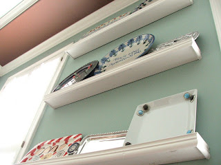 These ledges I came up with are perfect and allow me to rotate the display of platters. I love that! FYI—these make fabulous picture shelves too!!!
