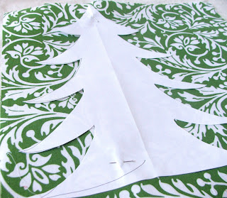 Pin the cut out tree template on the the fabric. Cut out (I used pinking shears…because I love them)