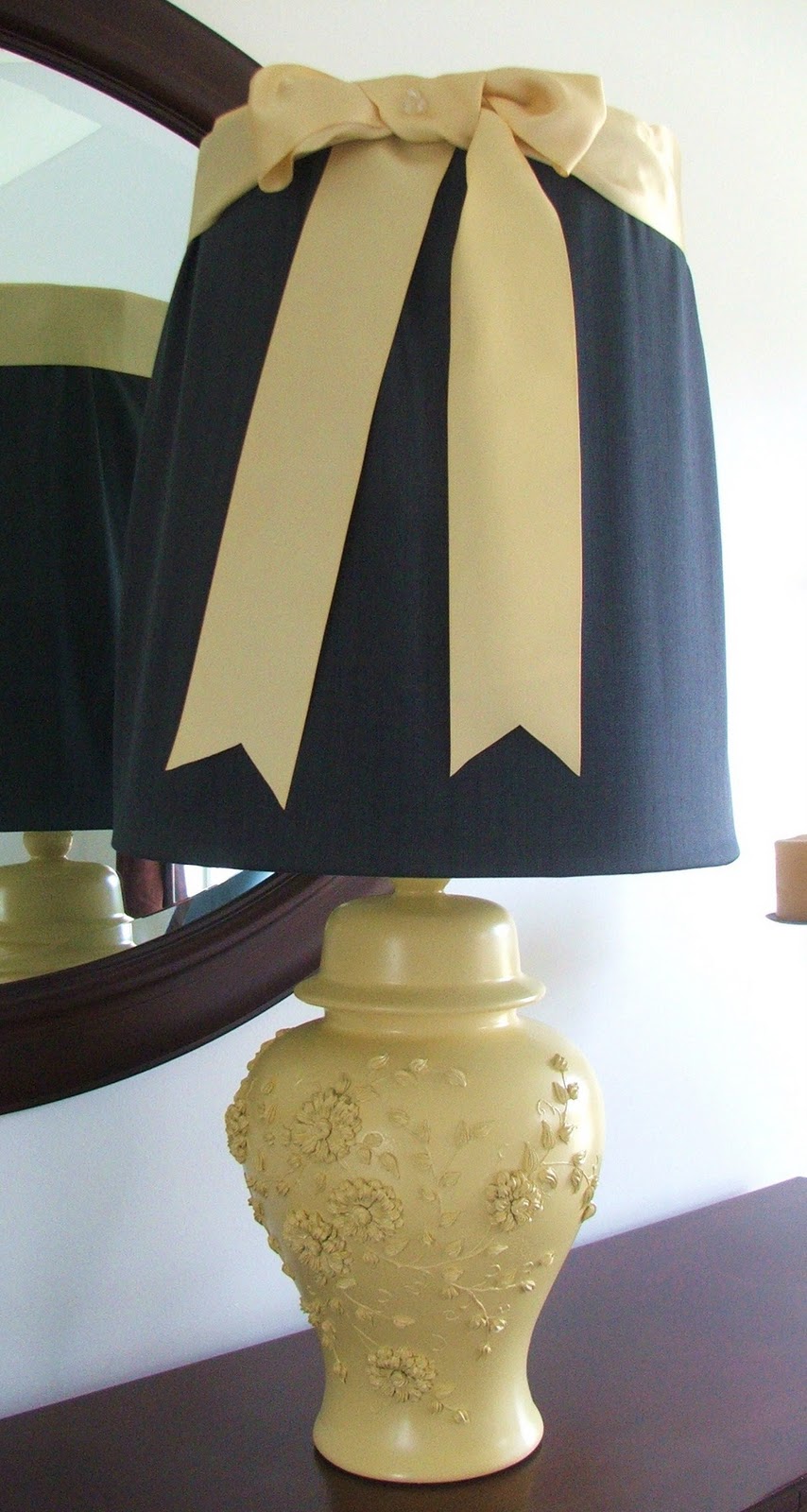 I got some 3 inch ribbon at JoAnn Fabric in the same gold color as the lamp.