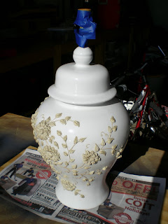 That lamp, was beauftul, I love all those little flowers, and I have to say with her new skirt, she looks fabulous. Great idea. Love it.