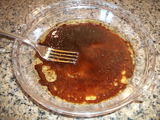 In a pie dish, combine 1/3 olive oil, 2 Tablespoon soy sauce, 1/3 cup brown sugar, 1 clove of garlic minced. Salt and pepper to taste.