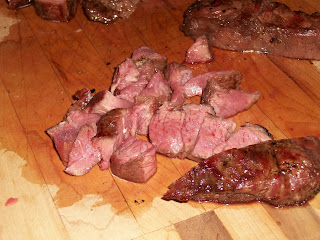 Grill either under a high broiler (4 minutes each side) take out and let rest 5 minutes. If you are grilling outside direct heat–medium high….3 minutes on each side. Let rest….