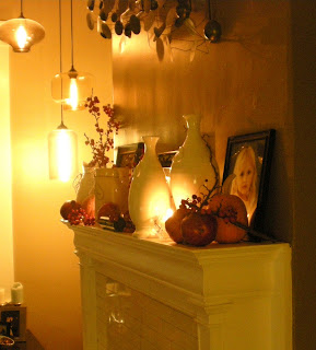 Chris dressed the mantle in natural berries, mason light candles, pomegranates and some lovely white pottery. It really did feel as warm as this picture…can you smell the turkey?? Yes…love this party so…