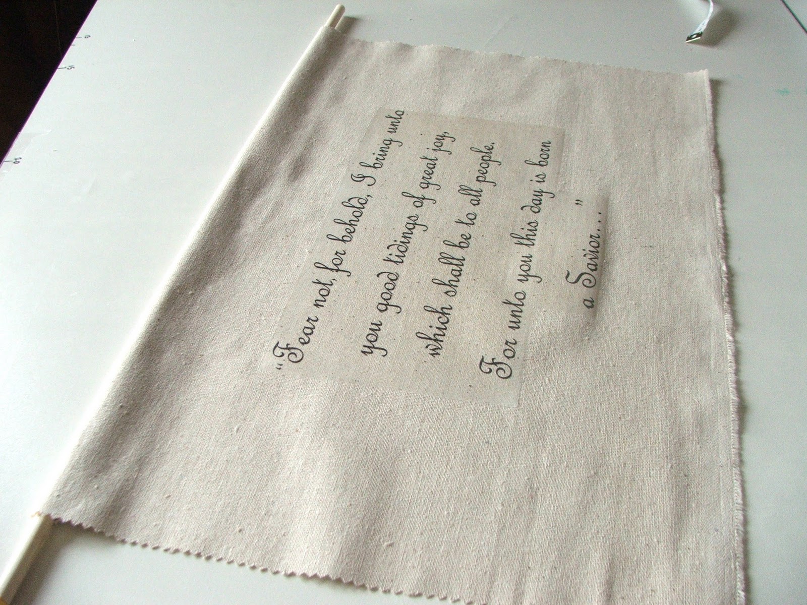 DON”T peel it until it cools off for at least 5 minutes—it will not come off right. After you let it cool, peel off at a corner and your text will be right side facing up on your muslin.
