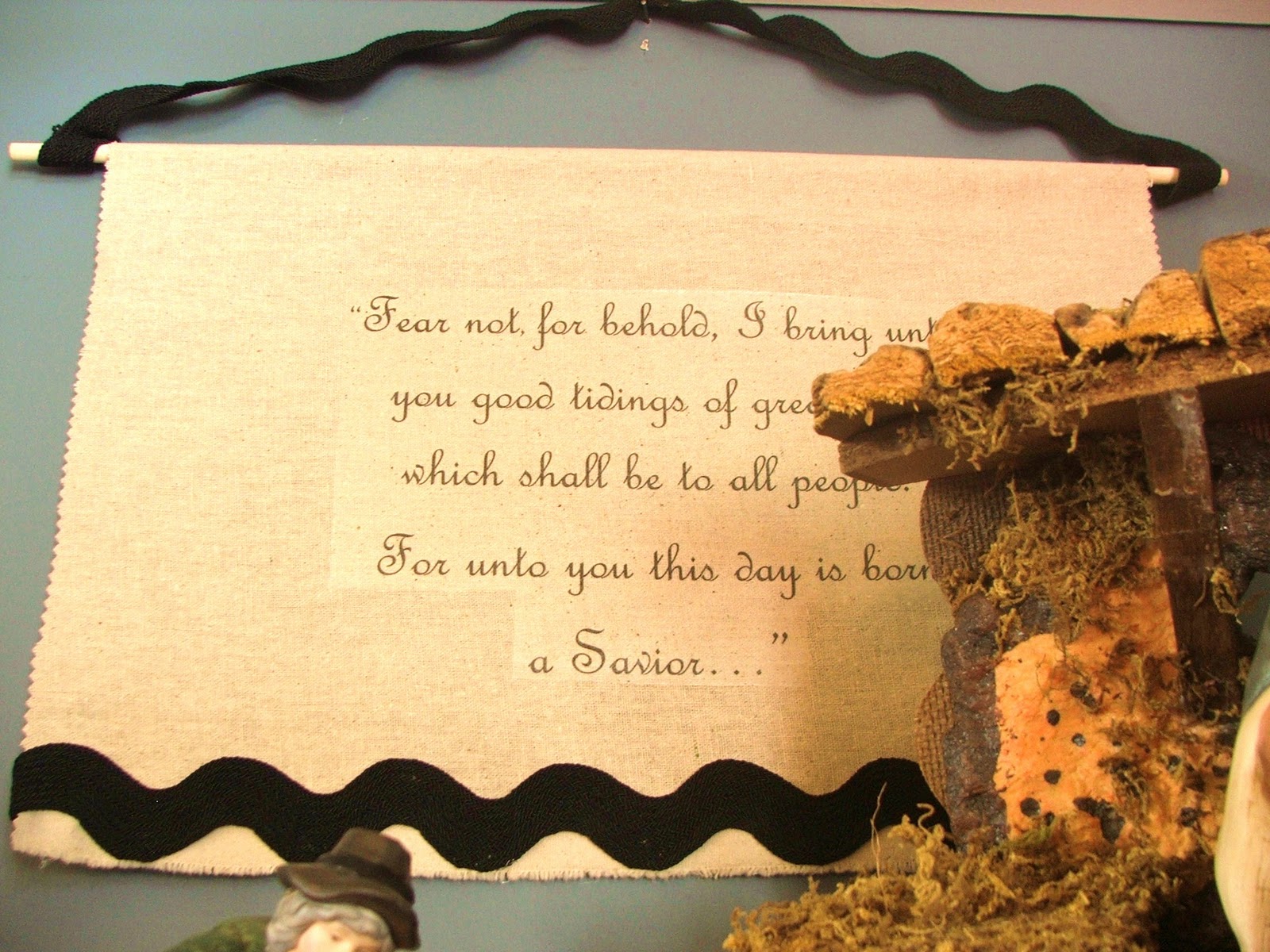 Linus was my inspiration for this little wall hanging I came up with. I wanted something to hang right behind the manager scene…and I thought those words would be perfect.