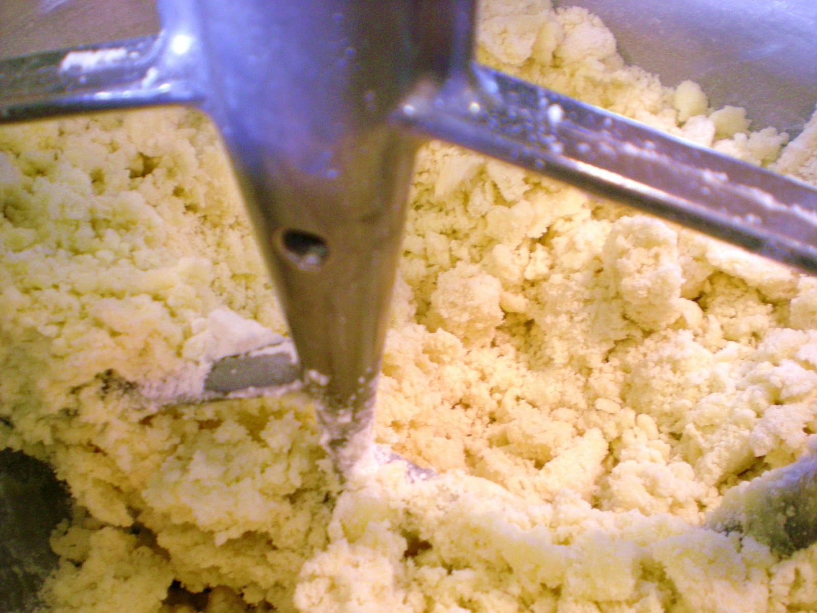 The dough will be crumbly, so knead it together with your hands as you scoop it out of the bowl for rolling.