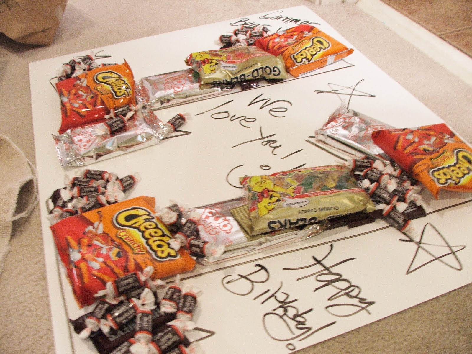 I took that idea and decided to apply it to my kids birthdays. After they go to sleep we decorate the hallway and door with their favorite treats.