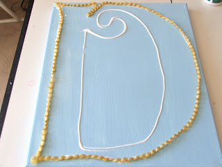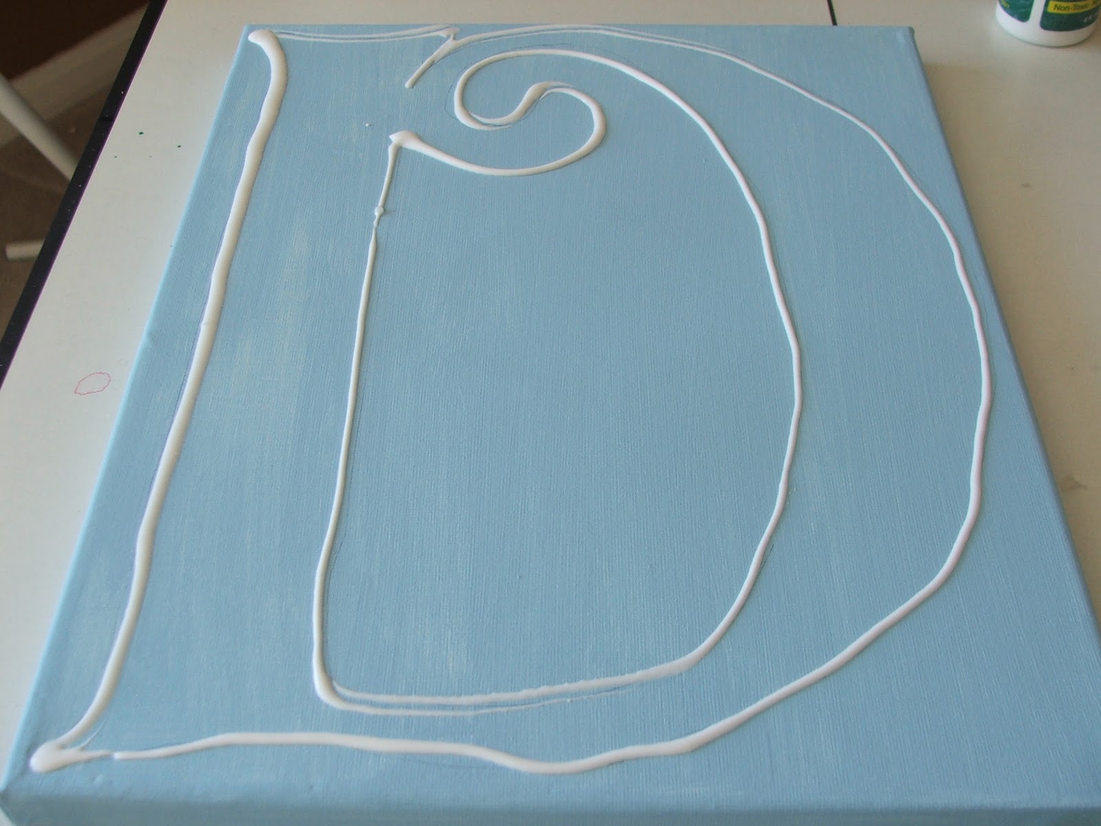 Allow this to dry so that your letter will have this outline when you go to fill in with the rest of the yarn.