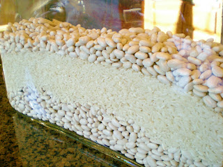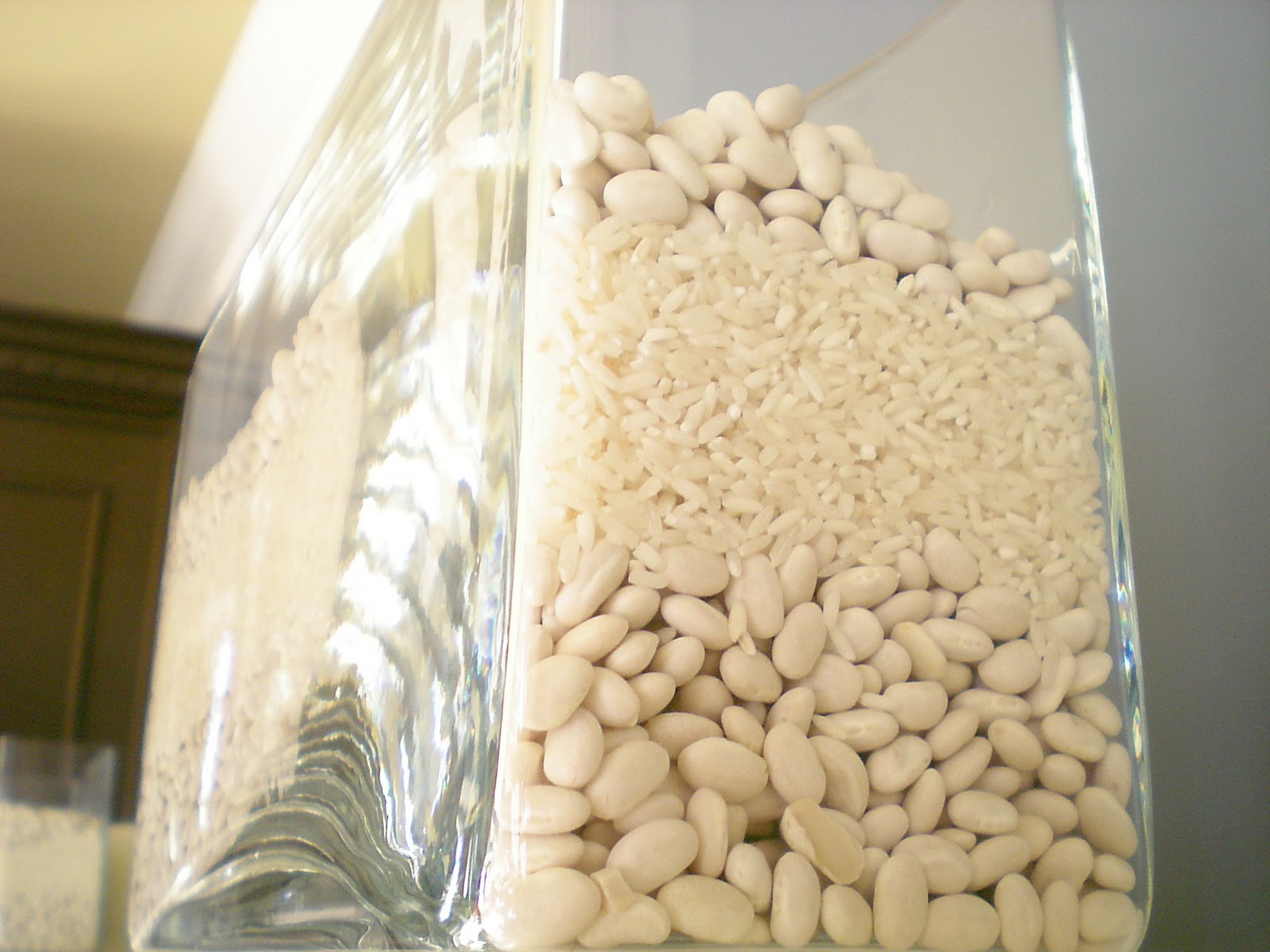 For these super large vases I used 3 bags of great northern beans (.98cents) and one bag of white rice (1.50)