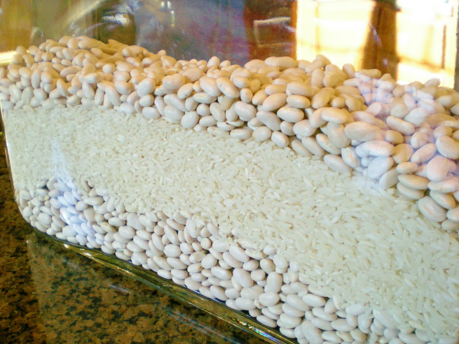 I put in 2 bags of beans, then all the rice, then the last bag of beans.