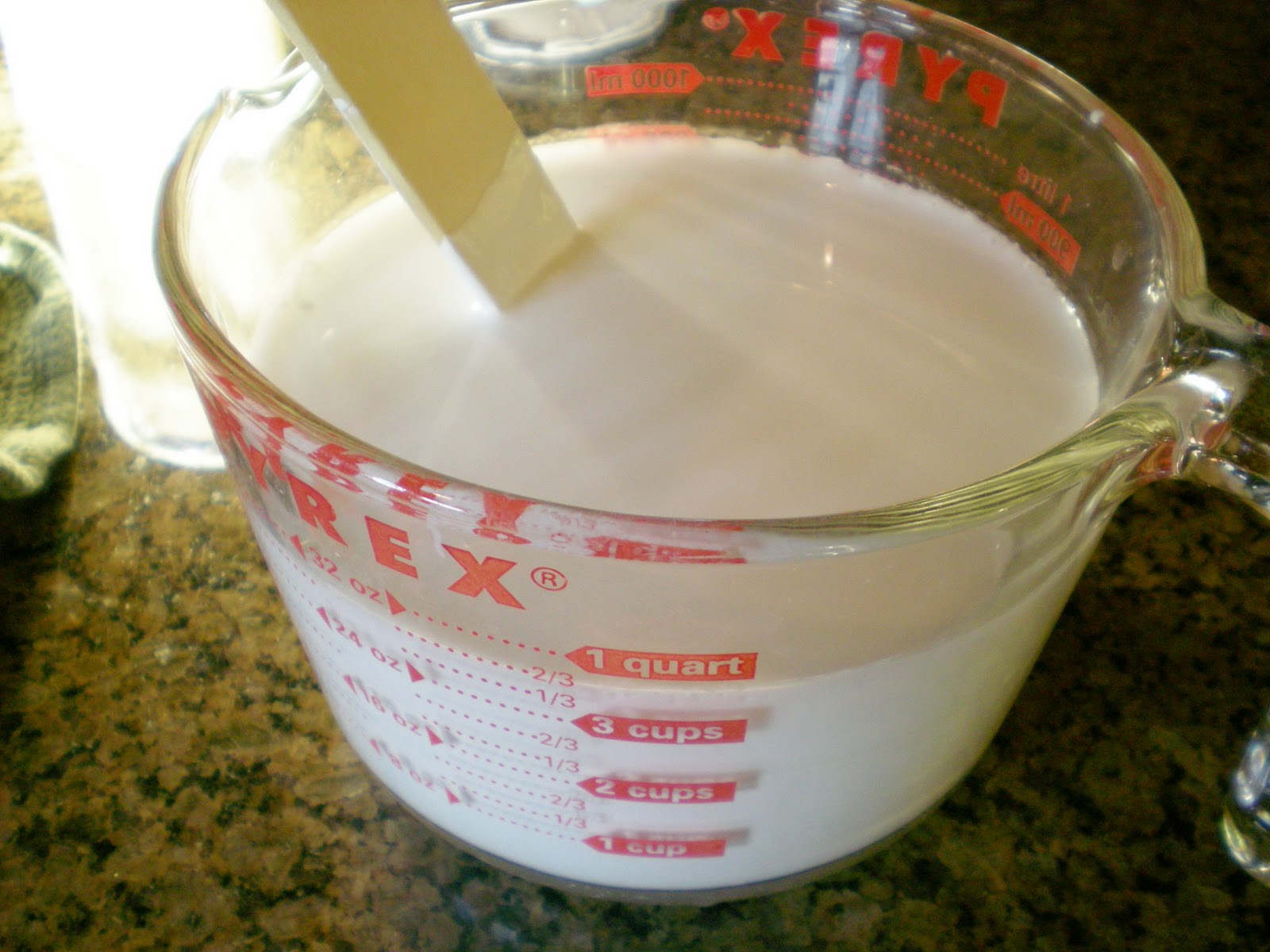Used a large pyrex measure cup. I had the paint on hand—just the white from the mantle. I poured in 2 cups.