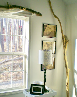 the place is decorated completely with found objects and re purposed materials…(except for our beds ;) Here is some drift wood found at the local state park…I used it to hang the curtains with too!