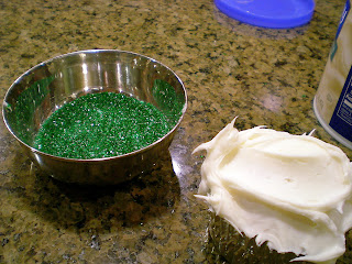 I chose to “dunk” the entire top into a bowl of green sprinkles to get even coverage….