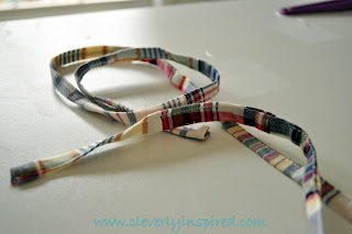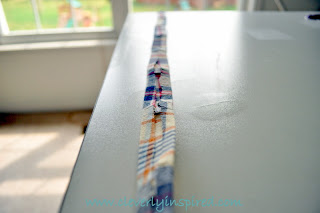 With the other pattern piece cut out fabric for the tie. Iron flat and sew together…