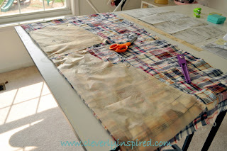 Scissors, iron, large flat surface, safety pin, sewing machine and matching thread, pins….and a little time :)