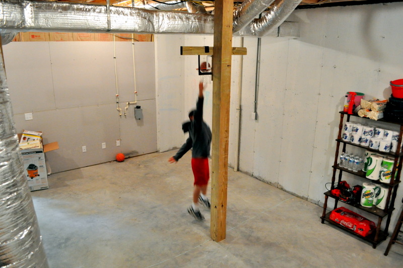 We spent some time in the basement putting up a basketball goal. It is a benefit to a walk-out basement that has crazy tall ceilings…about 13 foot.