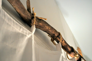 I made these curtain hooks from a bunch of roping. I tied them up to a piece of driftwood. Very low cost—but chic right?!?!