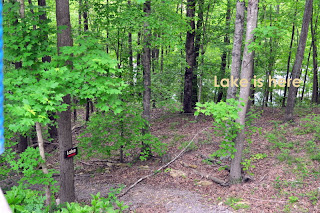 The path to the lake is all wooded. Just a little ways to reach the water and the boat at our dock.