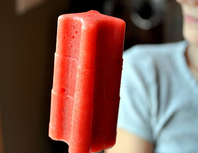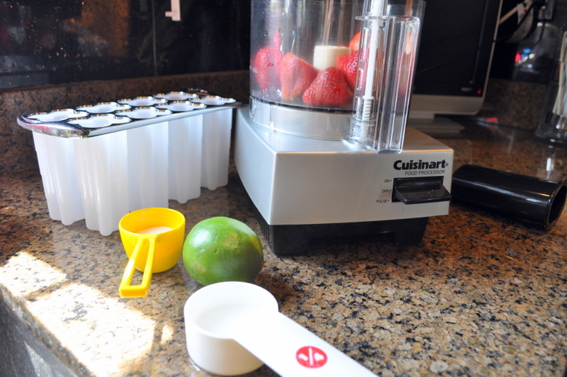 We had some strawberries that were on their last leg…so to speak. They needed to be eaten or tossed. So I looked up a super easy recipe for homemade strawberry ice pops. So yummy! Emily had them for breakfast all last week!
