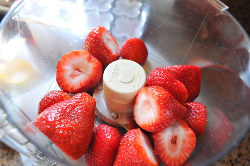 In a blender or food processor..mix the strawberries, lime juice, water and sugar.