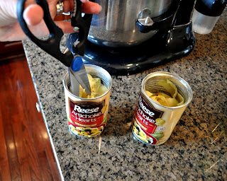 Drain and chop up your artichokes (I use a scissors in the can…less clean up!)