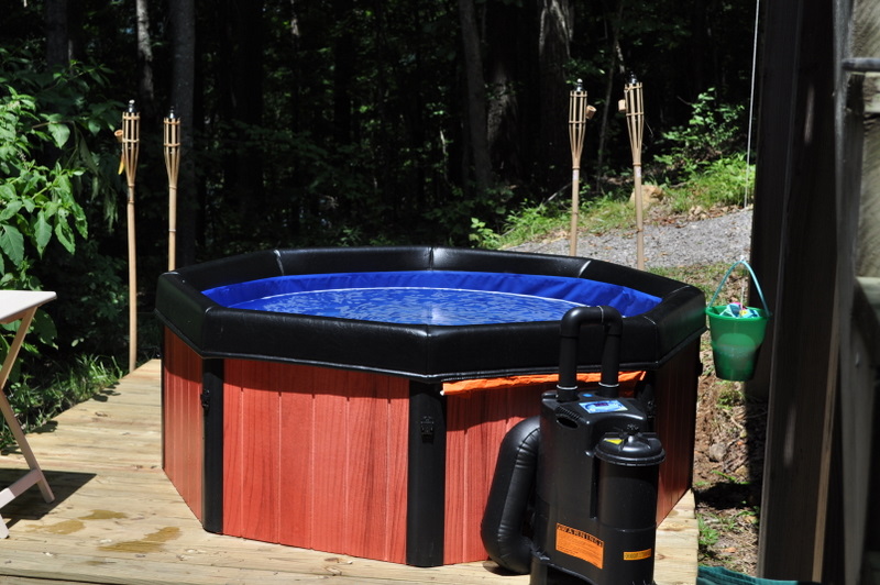 We laid some peagravel and some pavers…very rustic. It is a great hot tub for this kind of location. We are able to completely disassemble it in the harsh winter months and only have it outside when we want.