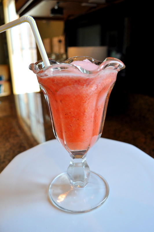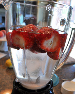 2. In a blender combine remaining 3 cups water, 1/2 cup sugar, and the strawberries; process until smooth. Transfer to a 2-quart pitcher; add cooled syrup, lemon peel, and lemon juice. Stir to combine. Fill pitcher with crushed ice. Makes 8, 8-oz. servings.