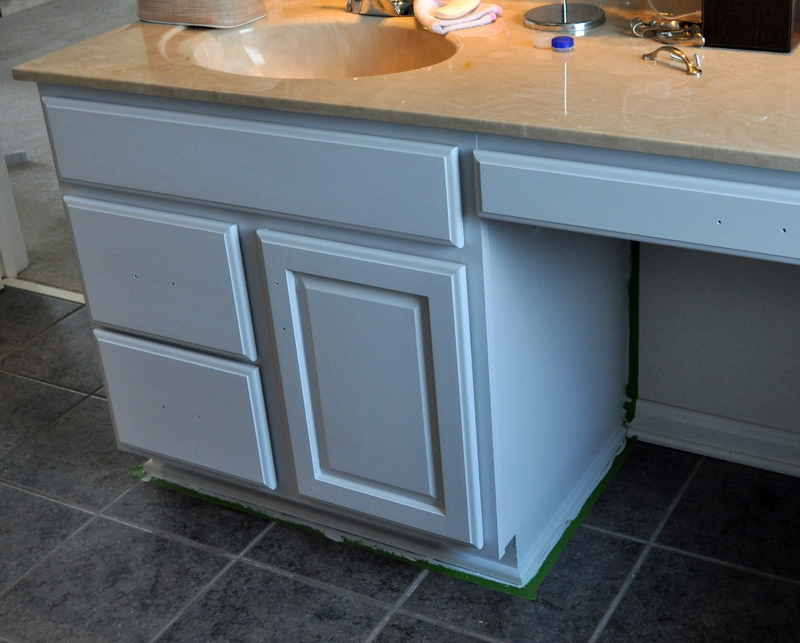 So I decided to go ahead with a project I have been wanting to get done for awhile. I picked a color for my dated bathroom cabinets (see Monday post :) ….they were so seven years ago….I joke I joke…they just weren’t our style anymore. Paint is your friend in this situation.