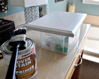 I chose an oilbased primer (love the zinsser product) It does the job it says it will do “cover all”. In a bathroom where you have to wipe the surface often you need to use a primer that will stick well and allow the paint to adhere perfect. Oil based is the only way to go. I use throw away brushes so I don’t have to deal with mineral spirits and washing out the brushes. And CentsationalGirl tells me you can get the oilbased primer comes off your hands with vegetable oil…Love that!! PS…she has mad paint skills….you must check out her tutorials. Love them all!