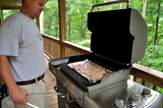 I discovered something amazing on a recent trip to my cousins house in Philadelphia. Cooking bacon on the grill!! If you already have been doing this…then there is no need to read on…see ya tomorrow. But if you haven’t I must tell you….we will never cook bacon the same way again!!!! So easy, so ZERO clean up, and perfect! No greasy bacon smell in your house….but yet all that bacon goodness that you love :)