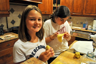 The end of this summer we went on a road trip. While Bill was busy at work…my mom and kids and I drove to Philadelphia. It is a place that takes me back to my childhood. I have many relatives and dear friends there…and I wanted to show our kids a bit of history too. While we were there…we spent some time with my cousins in West Chester. One night the two girls wanted to make some fresh pasta. My cousin’s daughter Stephanie taught Emily….and they had so much fun!