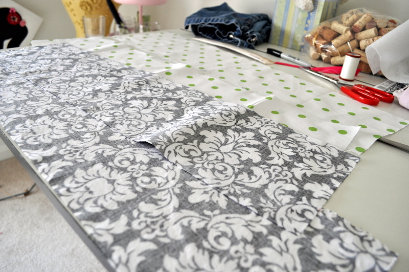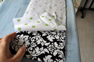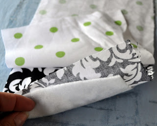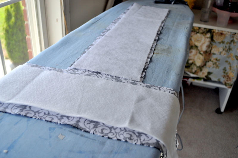 I cut 2 pieces of outside fabric and 2 pieces of liner fabric 6 by 25. I used med. weight fusible fleece to pad the back of the outside fabrics.