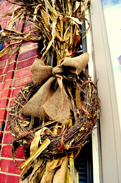 I love the corn stalks. And I agree about burlap being a good fall decoration.