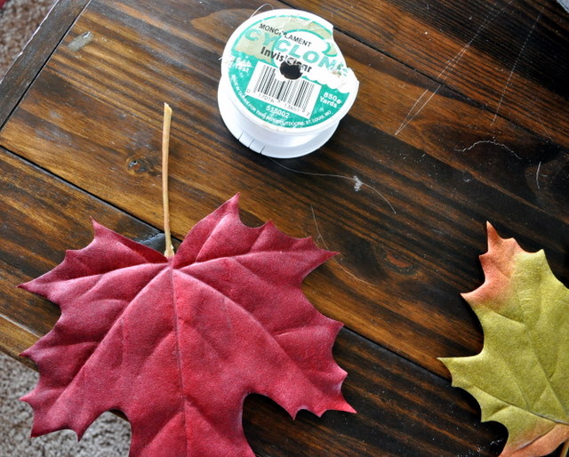 I bought 2 packages of large leaves at Michaels…..and secured them to the frames with fishing line.