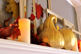 […] accents — the framed leaves are my favorite (and they look super simple to make). Check out the tutorial from Cleverly Inspired. Just spray paint some pumpkins and gourds in a fall-ish color and pair with some pillar candles. […]