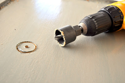 After the template was cut out I took a sharpie and made an outline to follow with the jigsaw. First drill a pilot hole large enough for your jigsaw blade to fit into.