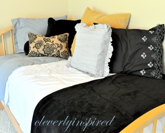 Making this twin bed seem more like a daybed makes it much more functional….yet still a guest room when they need it….