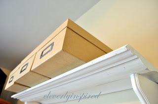 I created a shelf with a .50 piece of trim molding and a few wood brackets. It is the perfect landing place for Patti’s photo boxes (she will use this room to organize her 500 photo albums—-I joke I joke…but seriously she has a ton :)