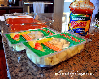 - 2 30-ounce bags frozen large cheese ravioli, unthawed (we used tortellini )