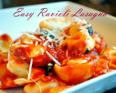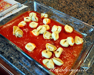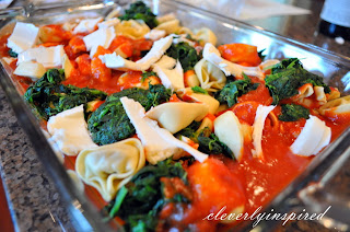 Open 2 packages of your favorite ravioli or tortellini (we like the chicken and spinach). Place one package on top of sauce. Then spread your drained spinach.