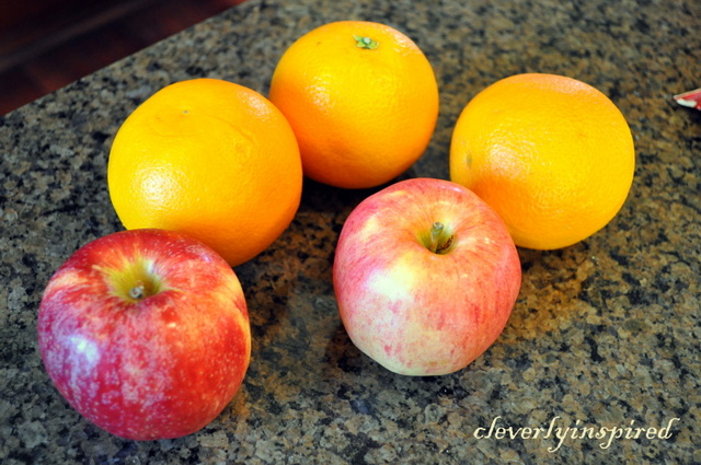 All you need is some fruit. I had oranges and apples available. I was inspired by this pin on pinterest. So cute…this little apple votive holder!