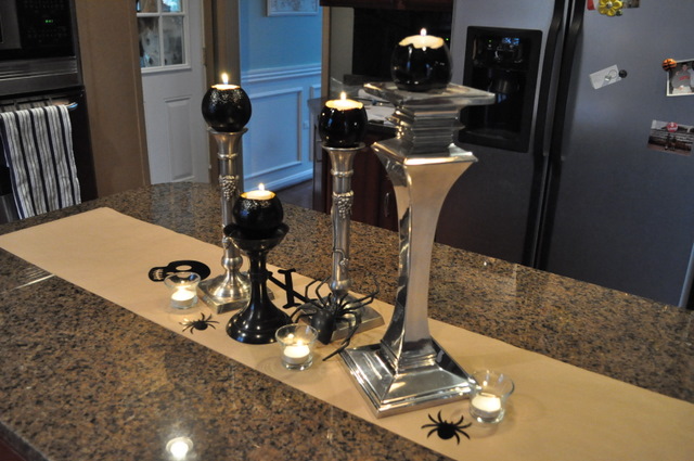What is the strangest thing you have ever spray painted? For me…this project was the first time I have ever spray painted fruit. Yes, as in apples, oranges….fruit. I am hosting a girls night on Thursday and since it is Halloween week and all….I decided to make it all creepy. Here is a peek at some table decorations that maybe you can throw together this weekend for your Halloween festivities!