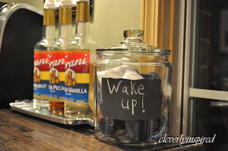 I want a wine/coffee bar right nowwww (said in my best Veruca Salt of Willie Wonka voice). Except we don't have a formal dining area so we'd end up eating meals on tv trays or something. I love your "out of the box" idea. It's nice to have a DH that lets you do your thing.