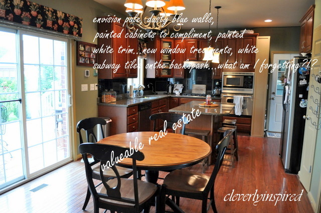 We are making our plan to change up the colors in here too…more on that soon! Think white woodwork, dusty faded blue island, cabinets in a shade lighter…freshened up windows…can’t wait :)
