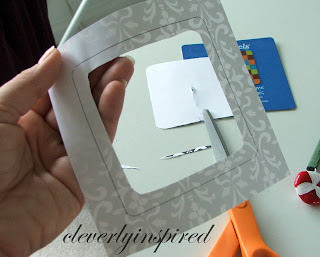 To make the front of the frame pretty around the center…use a coordinating paper and cut a “mat” out.