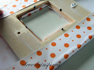Then glue the rest of the paper to the frame. Sort of like wrapping a gift. Pressing bubbles out as you go.