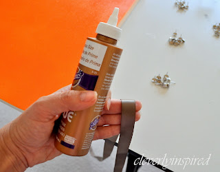 I glued the ribbon on the edge of the canvas when the paint was dry. Be sure to not over glue—you will make the glue bleed through the ribbon. I just place a small dot on the corners and center. Then glue on the pumpkin in the center. Again…don’t over glue—just enough to hold the pumpkin.