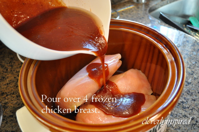 You know how I love a simple recipe right….I couldn’t believe how “no-brainer” this recipe was. I was sure it would fail. Ended up being some of the best barbecue chicken we have ever had. It was a huge hit with the whole family! Best part is….zero planning….it calls for frozen chicken breast! It took about 5 minutes to put together…and it cooks all day!