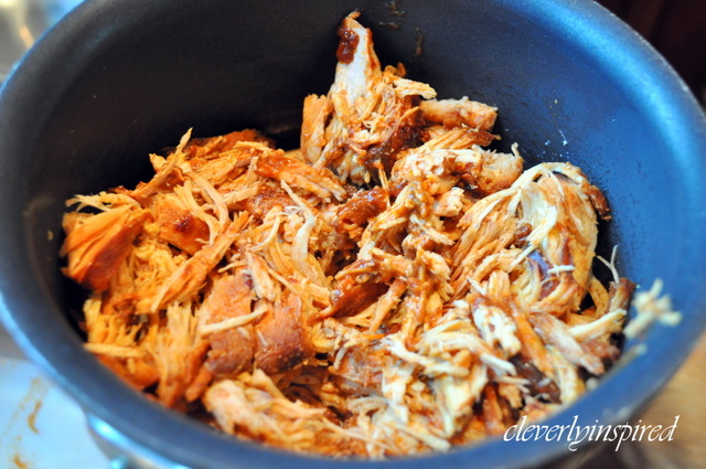 YUMMM this looks delicious, I made something like this before, but i actually cooked the chicken overnight first in chicken broth, Shredded it then cooked it for 5-6 hours in the BBQ sauce, your way sounds MUCH easier!!!