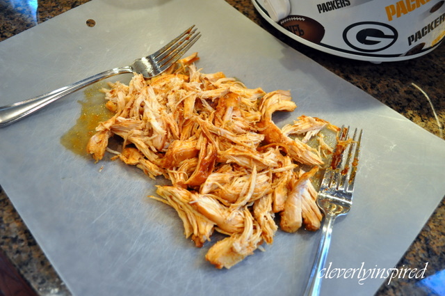 Cook on low for 5-6 hours. It will fall apart…literally fall apart with 2 forks.
